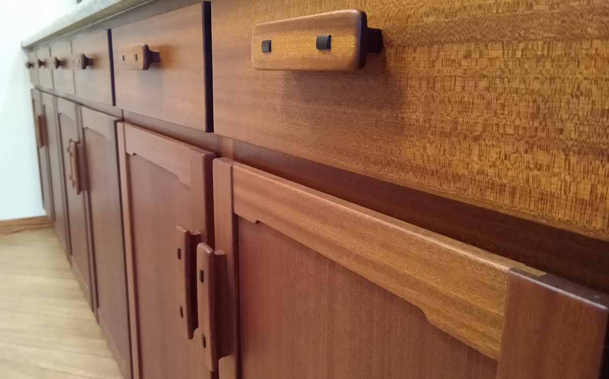 This has been a recent and long-standing project which I began in January of 2020. It turned out to be the perfect COVID project. I bought my materials before the price spikes and had something to do for some 20 months during lockdowns, social distancing, and plague. The project infolved tearing out an old captured roof and taking the kitchen and back entryway down to the studs. Other tasks: tearing off/rebuilding the porch roof, rebuilding the floor to remove two stepdowns, new windows, new doors, new wiring, new drywall/paint, installing granite countertops, building new cabinets, drawers, and doors. The wood is oiled sapele, a type of mahogany.